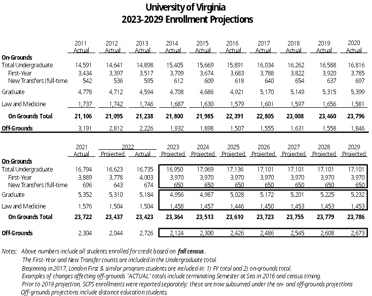 University of Virginia Enrollment Projections – Through Academic Year 2029-2030 12269